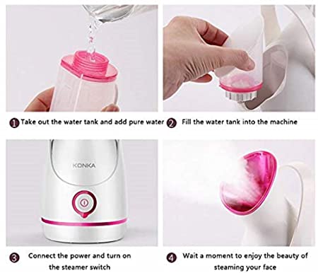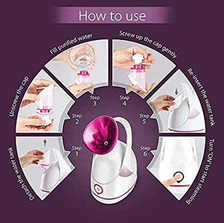 With ultrasonic high-frequency oscillation technology: The facial steamer takes the advanced PTC ceramic heating element to vaporize clean water and produce a visibly strong steam instantly. Ample and directed micro-fine steam penetrate deeply into all skin layers. Nano steam combined with ionic water particles can be up to 10x more effective in penetrating skin.